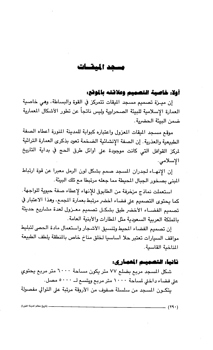 ثانياً: التصميم المعماري: شكل المسجد مربع بضلع 77 متر يكون مساحة 6000 متر مربع يحتوي على فضاء داخلي لمساحة 1000 متر مربع ويتسع لـ 5000 مصل. يتكون المسجد من سلسلة صفوف من الأروقة مرتبة على التوالي مفصولة…