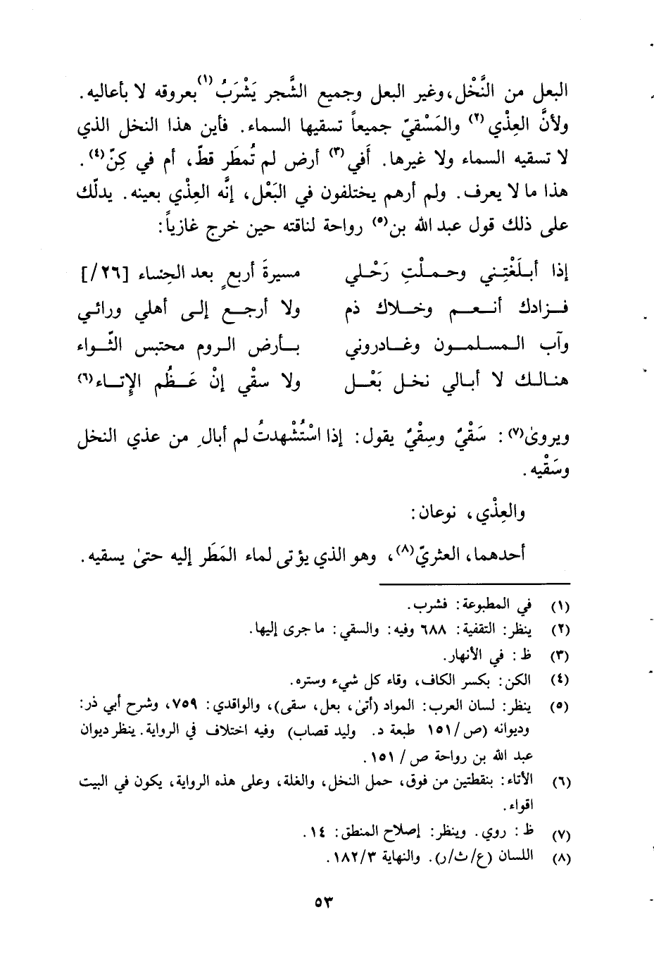 (¬5) ينظر: لسان العرب: المواد (أتى، بعل، سقى)، والواقدي: 759، وشرح أبي ذر: وديوانه (ص/ 151 طبعة د. وليد قصاب) وفيه اختلاف في الرواية. ينظر ديوان عبد الله بن رواحة ص/ 151.