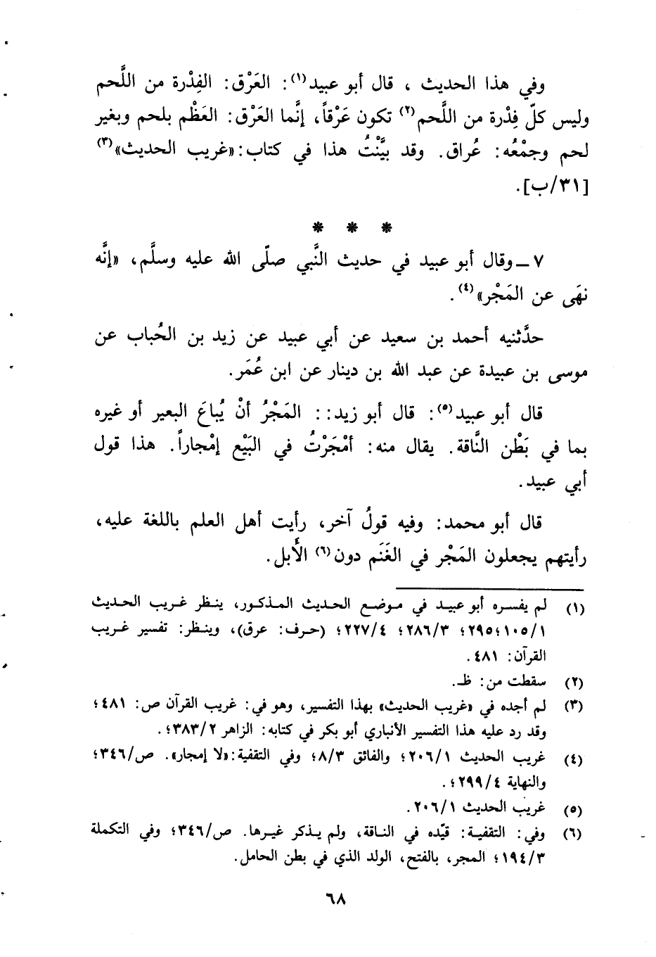 (¬1) لم يفسره أبو عبيد في موضع الحديث المذكور، ينظر غريب الحديث 1/ 105؛ 295؛ 3/ 286؛ 4/ 227؛ (حرف: عرق)، وينظر: تفسير غريب القرآن: 481.
