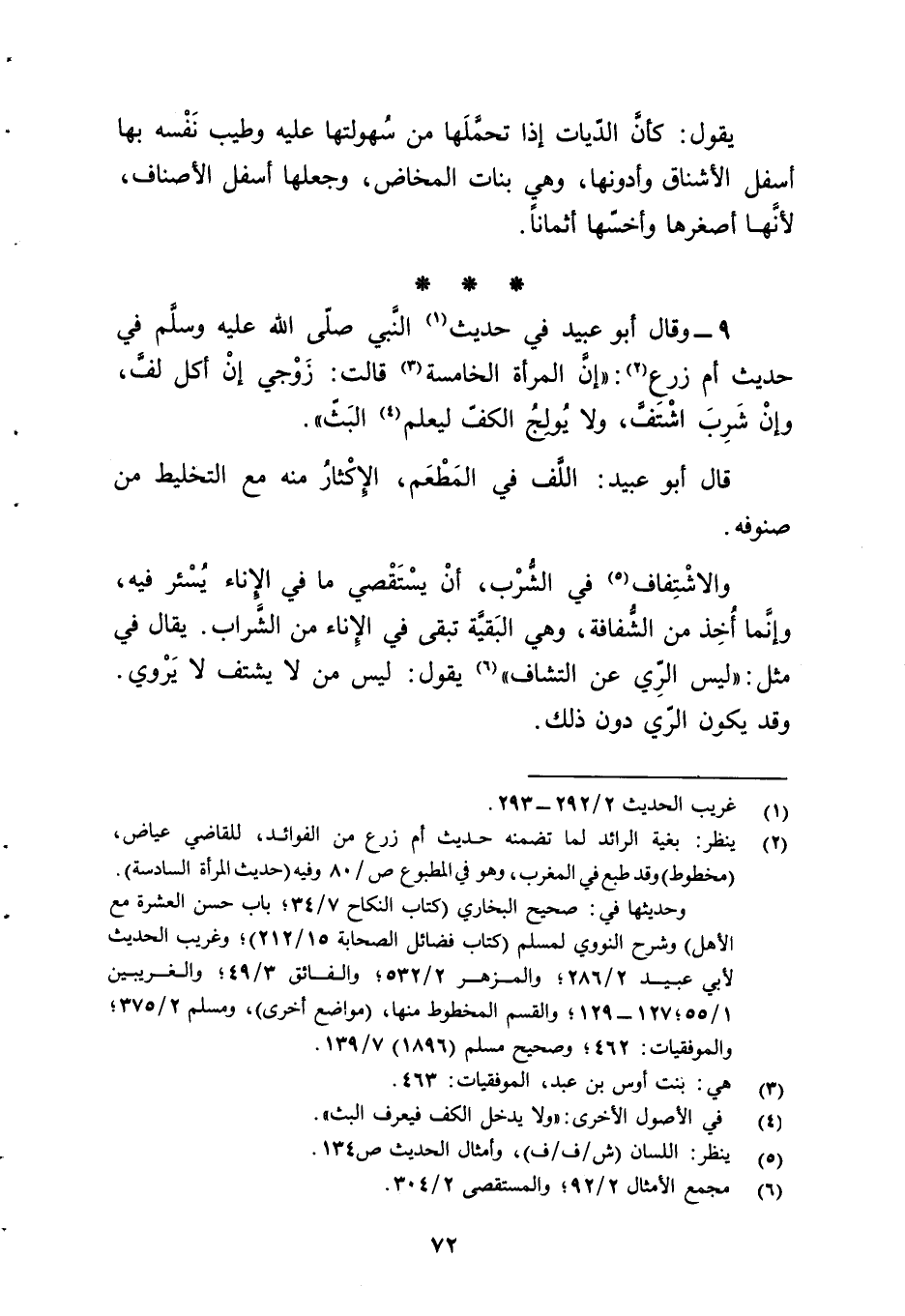 (¬2) ينظر: بغية الرائد لما تضمنه حديث أم زرع من الفوائد، للقاضي عياض، (مخطوط) وقد طبع في المغرب، وهو في المطبوع ص/ 80 وفيه (حديث المرأة السادسة). وحديثها في: صحيح البخاري (كتاب النكاح 7/ 34؛ باب حسن العشرة مع الأهل) وشرح النووي لمسلم (كتاب فضائل الصحابة 15/ 212)؛ وغريب الحديث لأبي عبيد 2/ 286؛ والمزهر 2/ 532؛ والفائق 3/ 49؛ والغريبين 1/ 55؛ 127 - 129؛ والقسم المخطوط منها، (مواضع أخرى)، ومسلم 2/ 375؛ والموفقيات: 462؛ وصحيح مسلم (1896) 7/ 139.