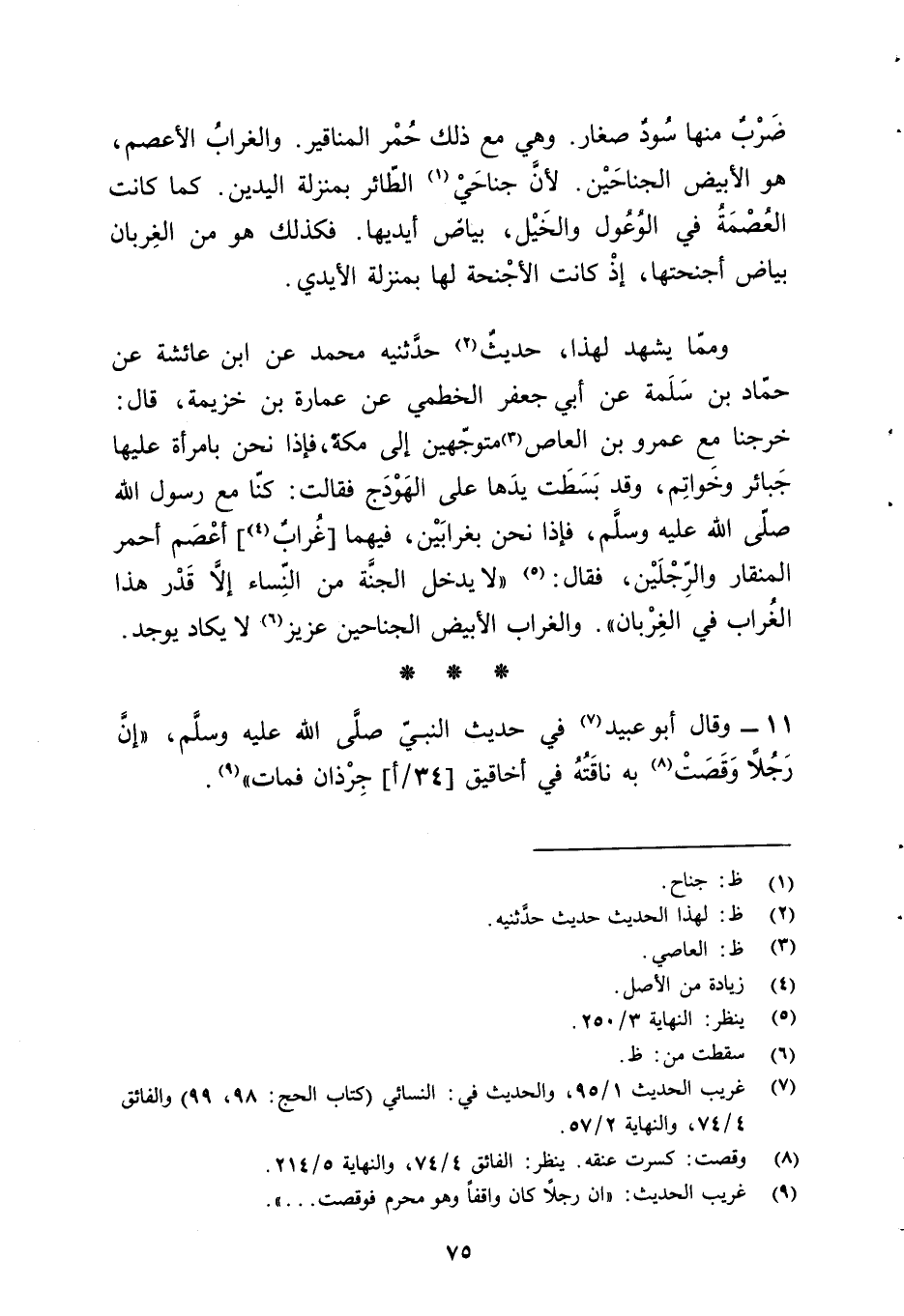 (¬7) غريب الحديث 1/ 95، والحديث في: النسائي (كتاب الحج: 98، 99) والفائق 4/ 74، والنهاية 2/ 57.