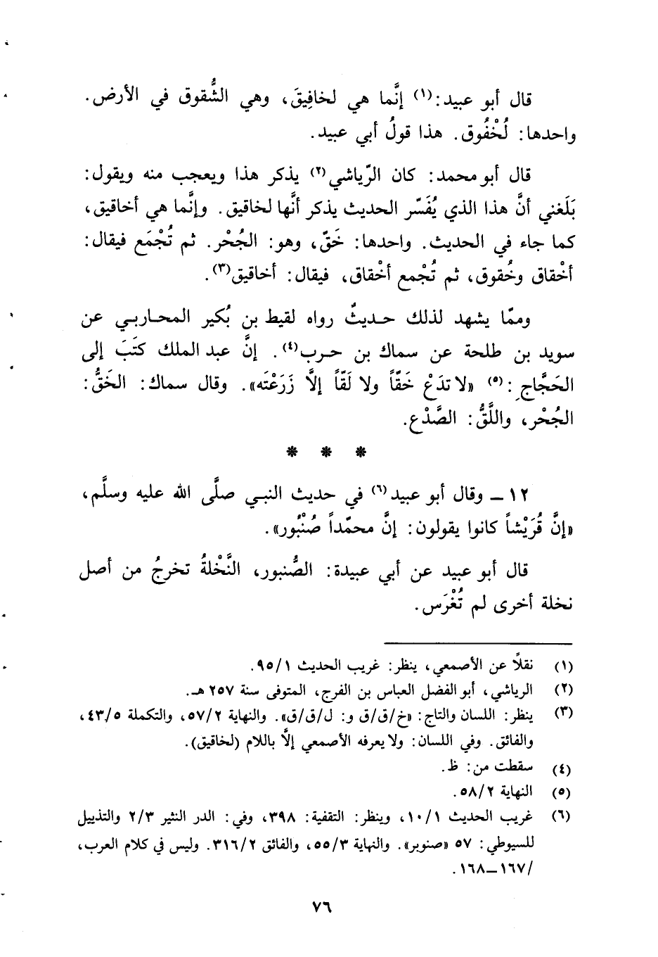(¬6) غريب الحديث 1/ 10، وينظر: التقفية: 398، وفي: الدر النثير 3/ 2 والتذييل للسيوطي: 57 "صنوبر". والنهاية 3/ 55، والفائق 2/ 316. وليس في كلام العرب، /168 - 167.