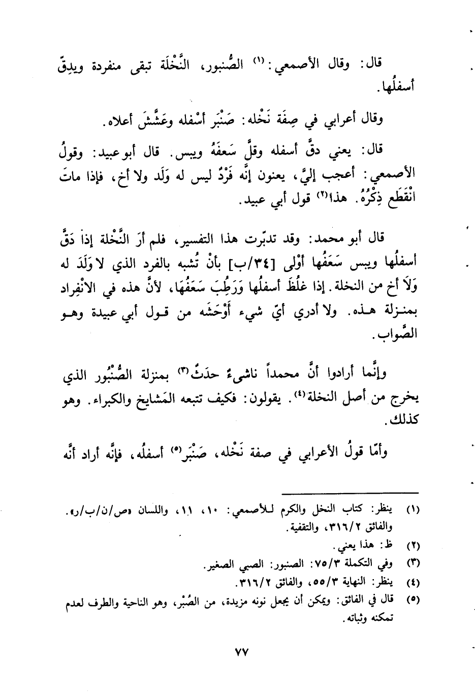 قال: وقال الأصمعي: (¬1) الصُّنبور، النَّخْلَة تبقى منفردة ويدِقّ أسفلُها.