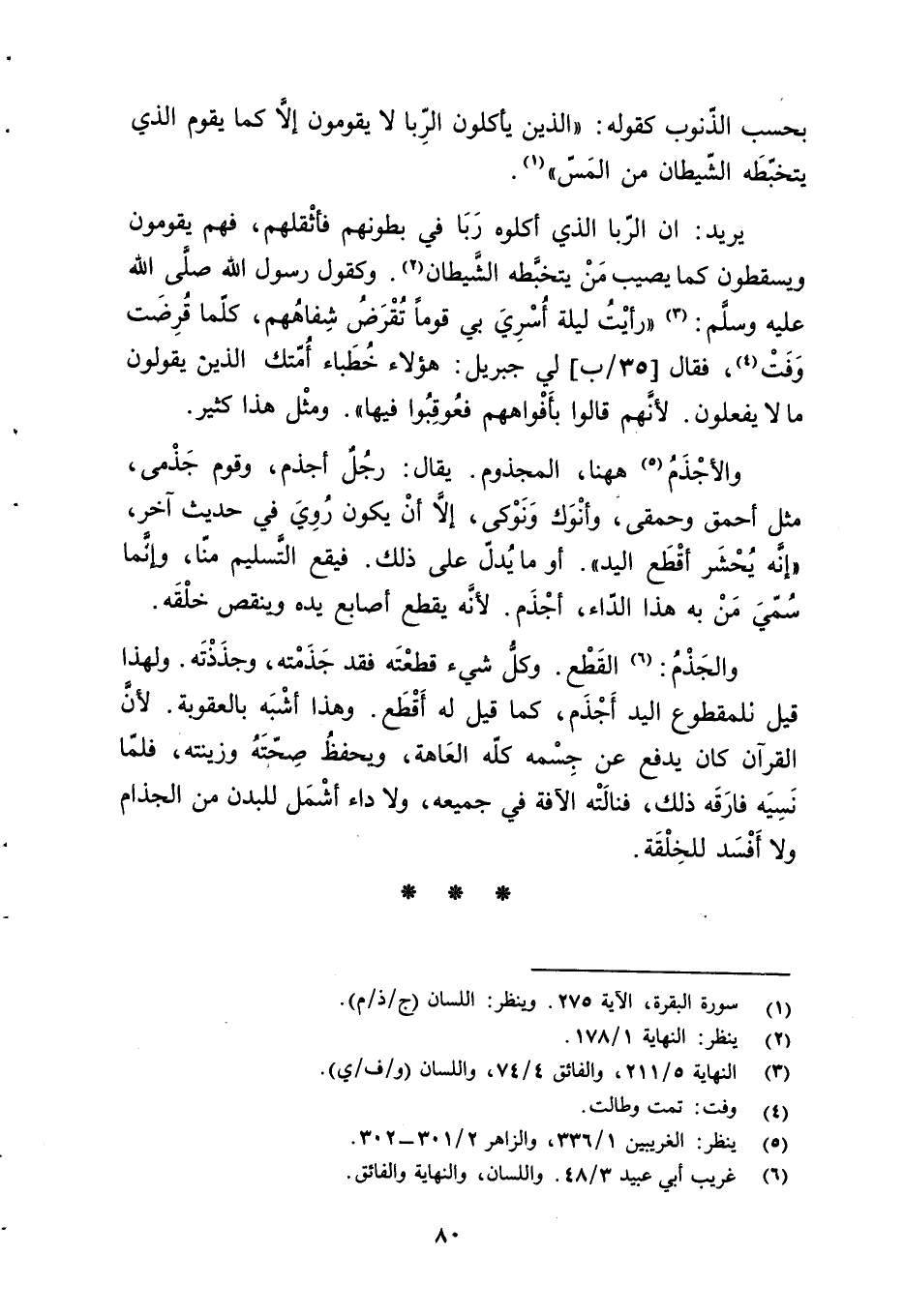(¬1) سورة البقرة، الآية 275. وينظر: اللسان (ج/ ذ/ م).