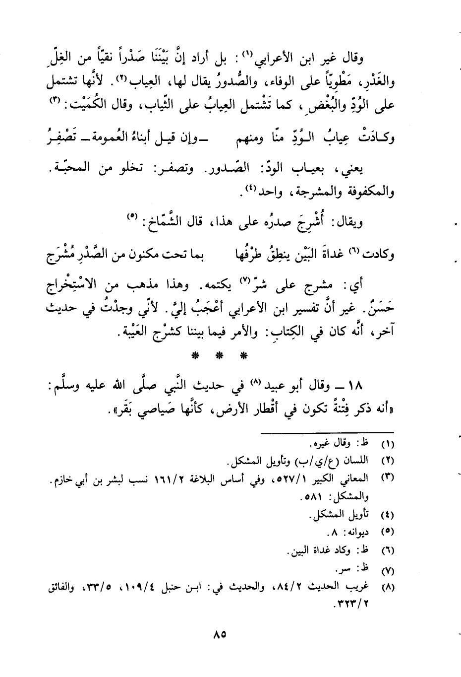 (¬8) غريب الحديث 2/ 84، والحديث في: ابن حنبل 4/ 109، 5/ 33، والفائق 2/ 323.