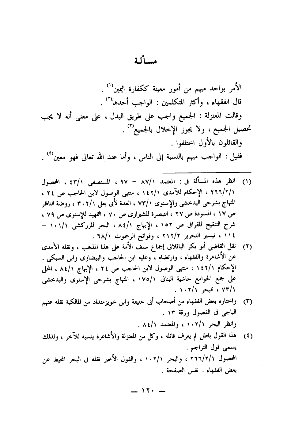 (١) انظر هذه المسألة فى: المعتمد ١/ ٨٧ - ٩٧، المستصفى ١/ ٤٣، المحصول ١/ ٢/ ٢٦٦، الإحكام للآمدى ١/ ١٤٢، منتهى الوصول لابن الحاجب ص ٢٤، المنهاج بشرحى البدخشى والإسنوى ١/ ٧٣، العدة لأبى يعلى ١/ ٣٠٢، روضة الناظر ص ١٧، المسودة ص ٢٧، التبصرة للشيرازى ص ٧٠، التمهيد للإسنوى ص ٧٩، شرح التنقيح للقرافى ص ١٥٢، الإبهاج ١/ ٨٤، البحر للزركشى ١/ ١٠١ - ١١٤، تيسير التحرير ٢/ ٢١٢، وفواتح الرحموت ١/ ٦٨.