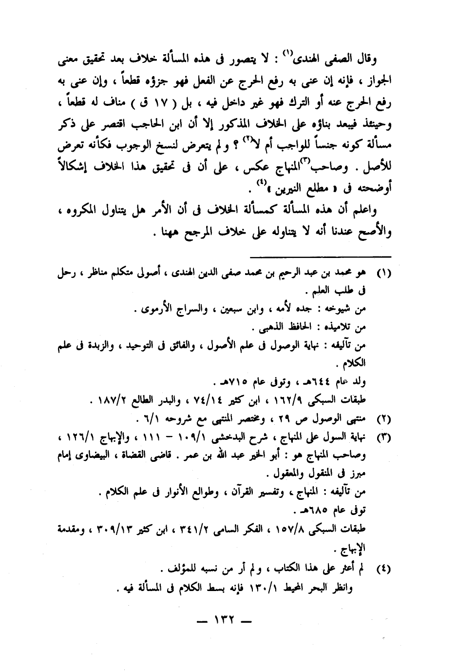 (١) هو محمد بن عبد الرحيم بن محمد صفى الدين الهندى، أصولى متكلم مناظر، رحل فى طلب العلم.