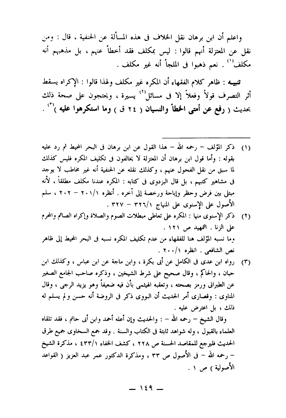 (١) ذكر المؤلف -رحمه اللَّه- هذا القول عن ابن برهان فى البحر المحيط ثم رد عليه بقوله: وأما قول ابن برهان أن المعتزلة لا يخالفون فى تكليف المكره فليس كذلك لما سبق من نقل الفحول عنهم، وكذلك نقله عن الحنفية أنه غير مخاطب لا يوجد فى مشاهير كتبهم، بل قال البزدوى فى كتابه: المكره عندنا مكلف مطلقًا، لأنه مبتلى بين فرض وحظر وإباحة ورخصة إلى آخره. أنظره ١/ ٢٠١ - ٢٠٢، سلم الأصول على الإسنوى على المنهاج ١/ ٣٢٦ - ٣٢٧.