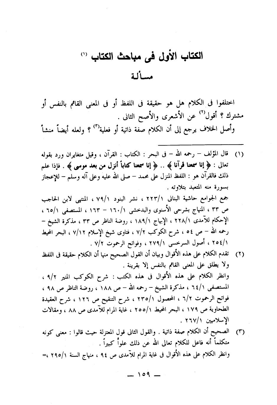 اختلفوا فى الكلام هل هو حقيقة فى اللفظ أو فى المعنى القائم بالنفس أو مشترك؟ أقول (٢) عن الأشعرى والأصح الثانى.