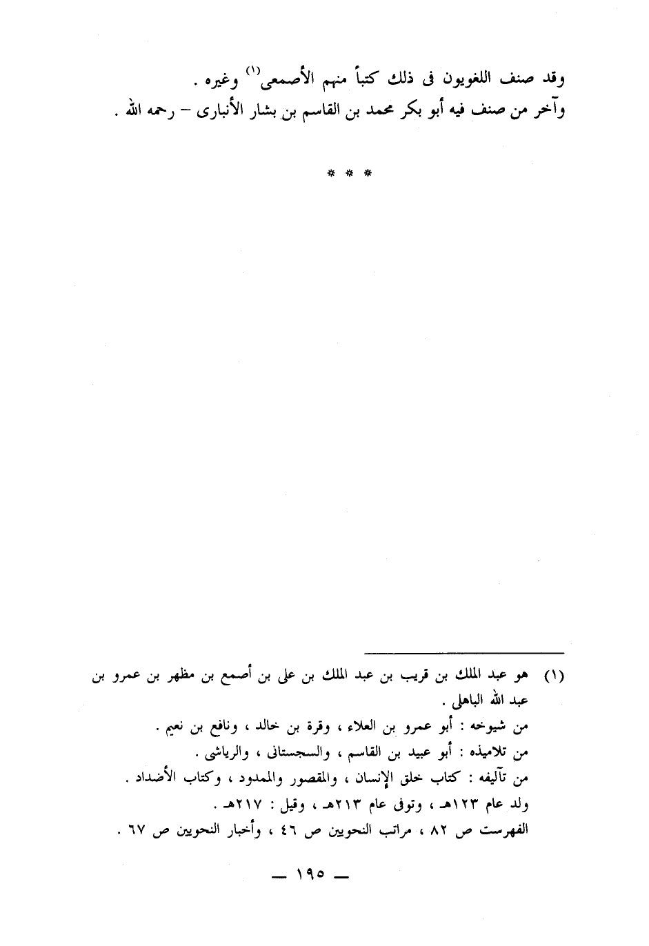 (١) هو عبد الملك بن قريب بن عبد الملك بن على بن أصمع بن مظهر بن عمرو بن عبد اللَّه الباهلى.