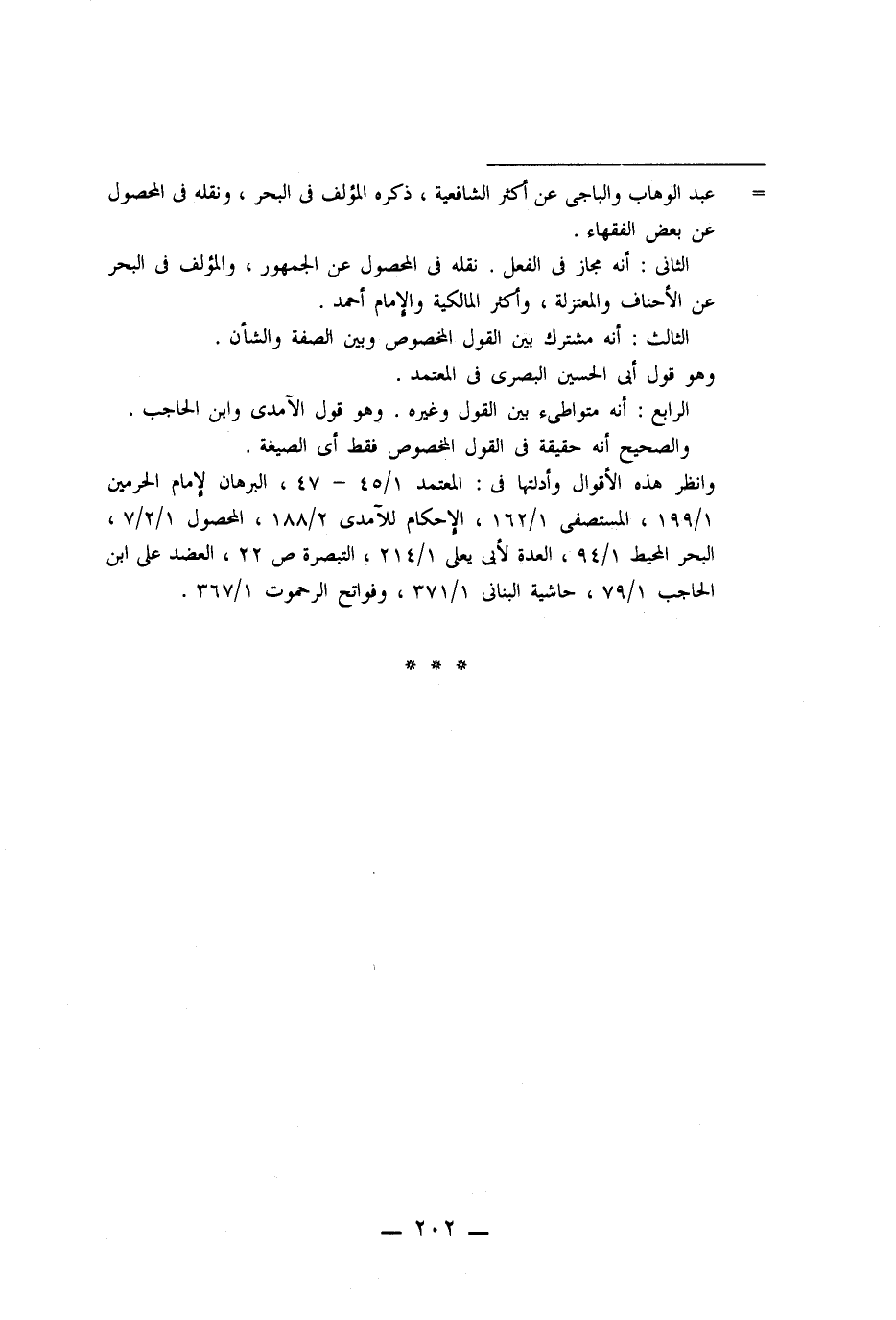 = عبد الوهاب والباجى عن أكثر الشافعية، ذكره المؤلف فى البحر، ونقله فى المحصول عن بعض الفقهاء.