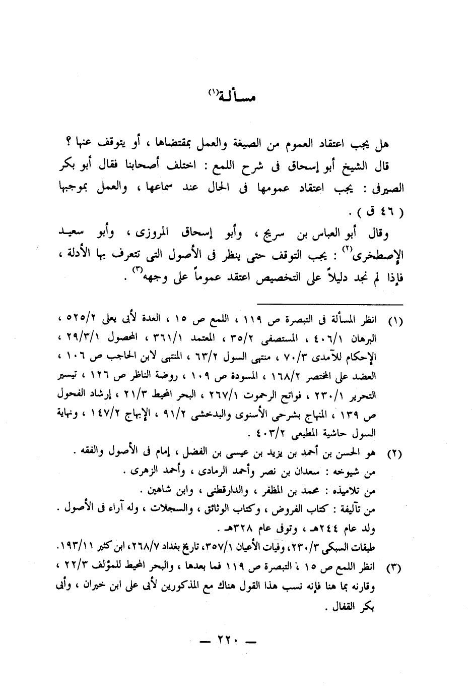 (١) انظر المسألة فى التبصرة ص ١١٩، اللمع ص ١٥، العدة لأبى يعلى ٢/ ٥٢٥، البرهان ١/ ٤٠٦، المستصفى ٢/ ٣٥، المعتمد ١/ ٣٦١، المحصول ١/ ٣/ ٢٩، الإحكام للآمدى ٣/ ٧٠، منتهى السول ٢/ ٦٣، المنتهى لابن الحاجب ص ١٠٦، العضد على المختصر ٢/ ١٦٨، المسودة ص ١٠٩، روضة الناظر ص ١٢٦، تيسير التحرير ١/ ٢٣٠، فواتح الرحموت ١/ ٢٦٧، البحر المحيط ٣/ ٢١، إرشاد الفحول ص ١٣٩، المنهاج بشرحى الأسنوى والبدخشى ٢/ ٩١، الإبهاج ٢/ ١٤٧، ونهاية السول حاشية المطيعى ٢/ ٤٠٣.