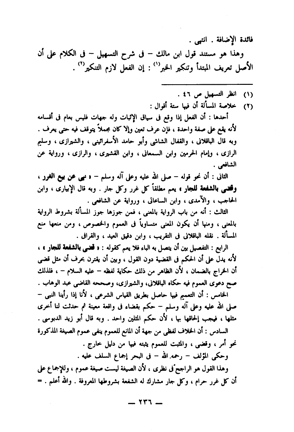 وهذا القول هو الراجح فى نظرى، لأن الصيغة ليست صيغة عموم، وللإجماع على أن كل غرر حرام، وكل جار مشارك له الشفعة بشروطها المعروفة. واللَّه أعلم.=