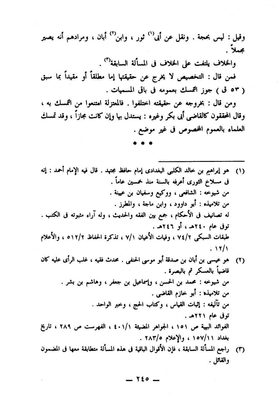 (٢) هو عيسى بن أبان بن صدقة أبو موسى الحنفى. محدث فقيه، غلب الرأى عليه كان قاضيًا بالعسكر ثم بالبصرة.