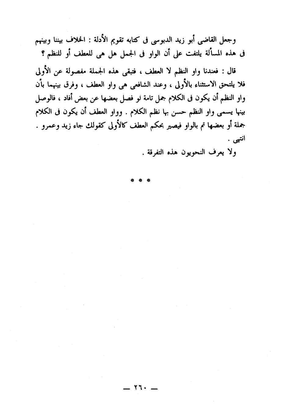 وجعل القاضى أبو زيد الدبوسى فى محعابه تقويم الأدلة: الخلاف بيننا وبينهم فى هذه المسألة يلتفت على أن الواو فى الجمل هل هى للعطف أو للنظم؟