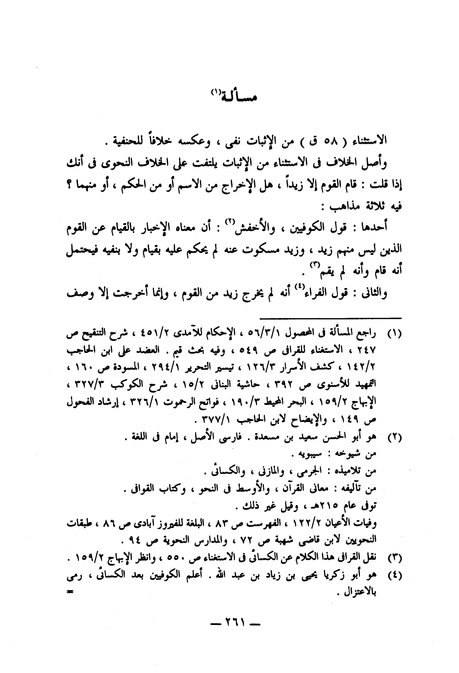 (٣) نقل القرافى هذا الكلام عن الكسائى فى الاستغناء ص ٥٥٠، وانظر الإبهاج ٢/ ١٥٩.
