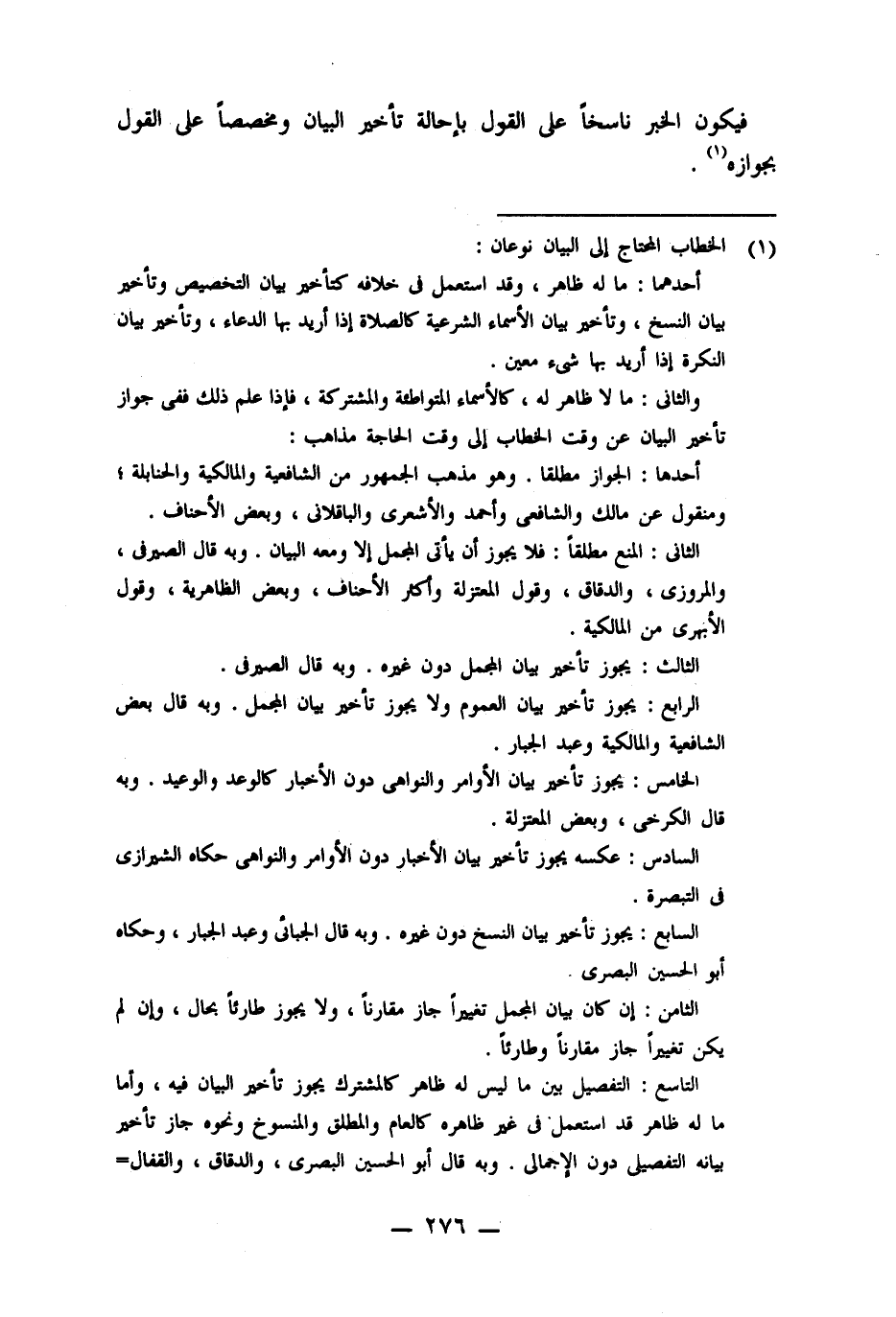 السابع: يجوز تأخير بيان النسخ دون غيره. وبه قال الجبائى وعبد الجبار، وحكاه أبو الحسن البصرى.