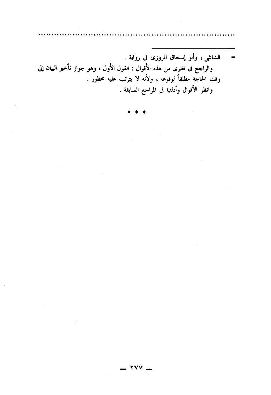 والراجح فى نظرى هذه الأقوال: القول الأول، وهو جواز تأخير البيان إلى وقت الحاجة مطلقًا لوقوعه، ولأنه لا يترتب عليه محظور.