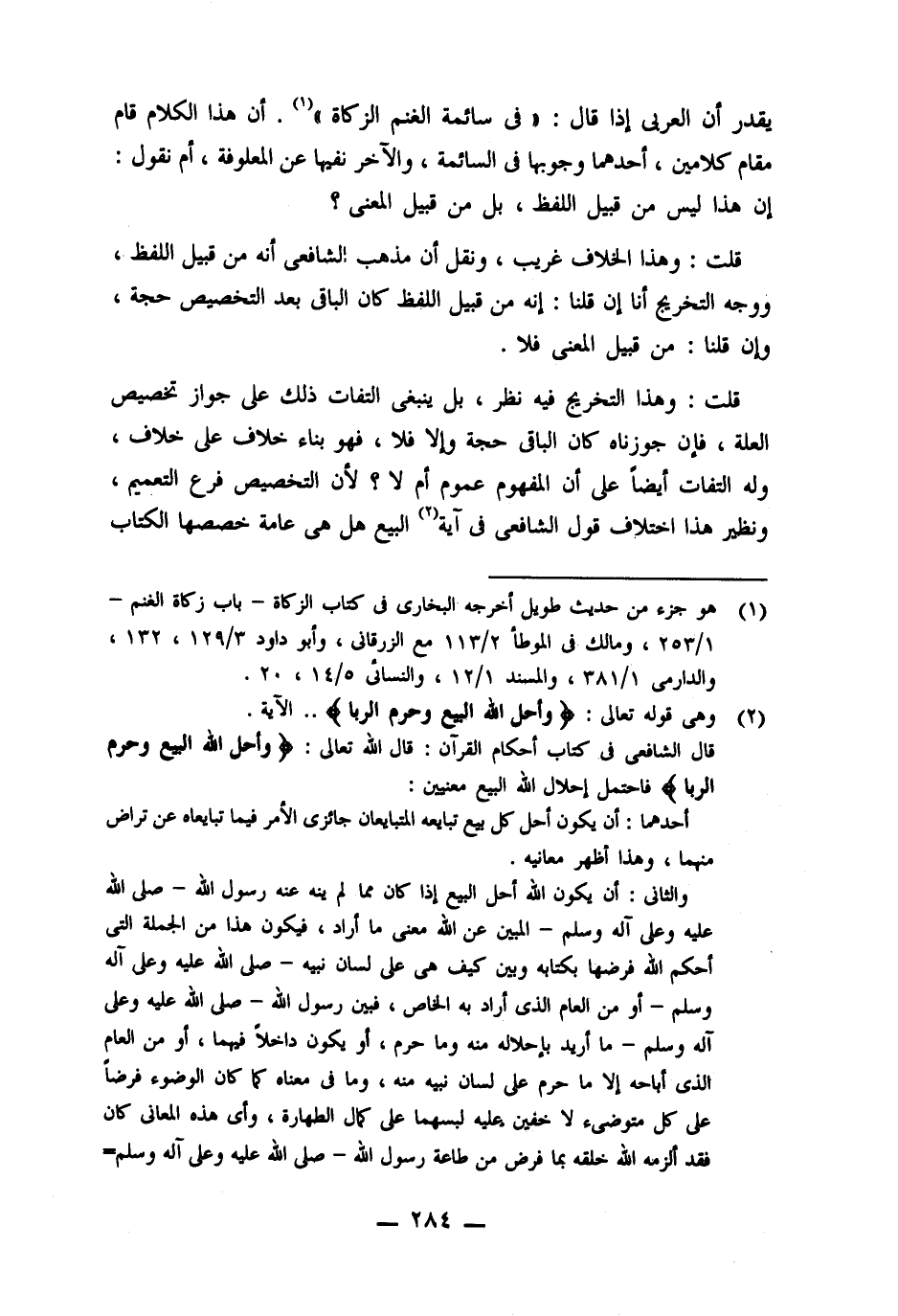 يقدر أن العربى إذا قال: "فى سائمة الغنم الزكاة" (١). أن هذا الكلام قام مقام كلامين، أحدهما وجوبها فى السائمة، والآخر نفيها عن المعلوفة، أم نقول: إن هذا ليس من قبيل اللفظ، بل من قبيل المعنى؟