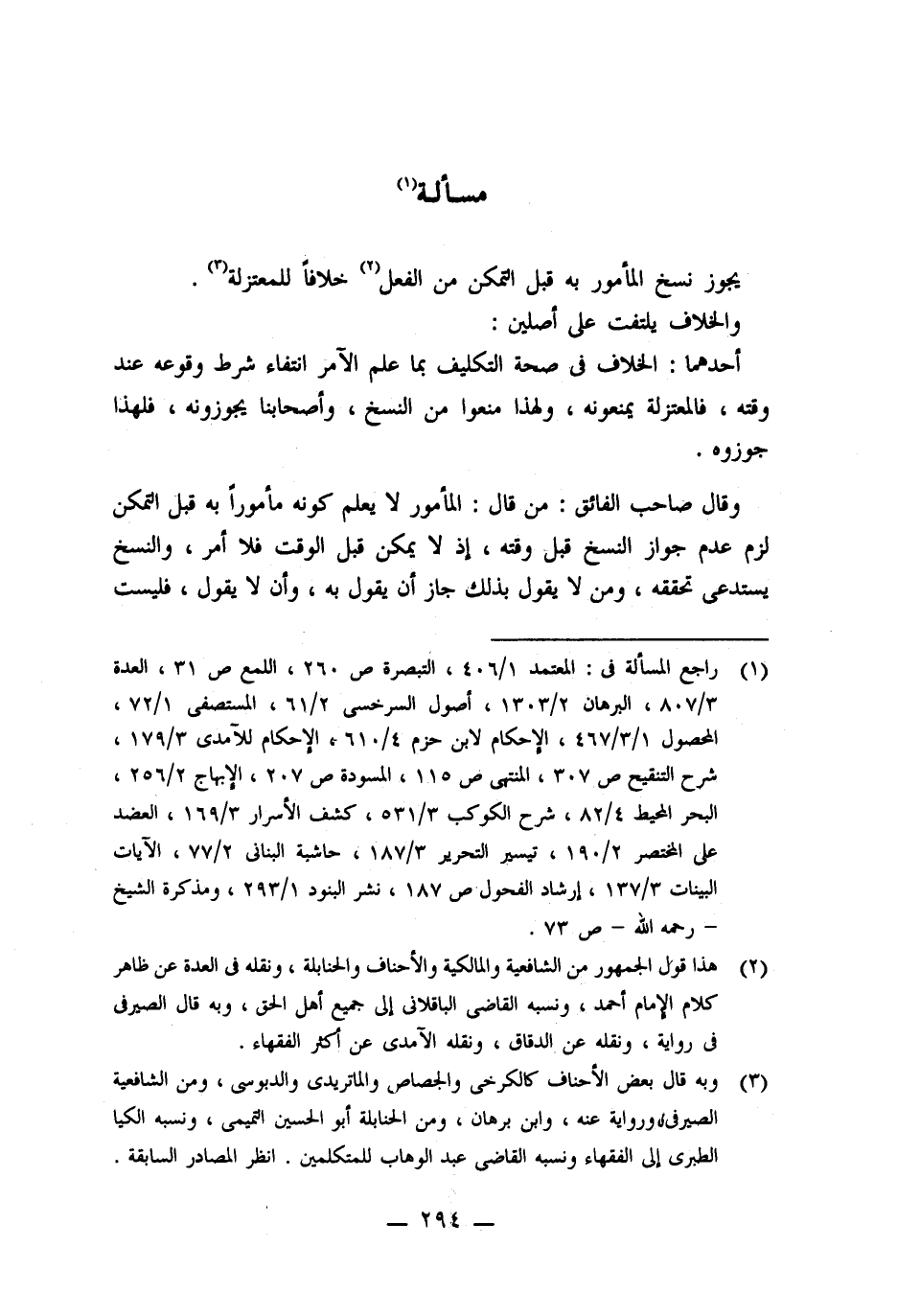 (١) راجع المسألة فى: المعتمد ١/ ٤٠٦، التبصرة ص ٢٦٠، اللمع ص ٣١، العدة ٣/ ٨٠٧، البرهان ٢/ ١٣٠٣، أصول السرخسى ٢/ ٦١، المستصفى ١/ ٧٢، المحصول ١/ ٣/ ٤٦٧، الإحكام لابن حزم ٤/ ٦١٠، الإحكام للآمدى ٣/ ١٧٩، شرح التنقيح ص ٣٠٧، المنتهى ص ١١٥، المسودة ص ٢٠٧، الإبهاج ٢/ ٢٥٦، البحر المحيط ٤/ ٨٢، شرح الكوكب ٣/ ٥٣١، كشف الأسرار ٣/ ١٦٩، العضد على المختصر ٢/ ١٩٠، تيسير التحرير ٣/ ١٨٧، حاشية البنانى ٢/ ٧٧، الآيات البينات ٣/ ١٣٧، إرشاد الفحول ص ١٨٧، نشر البنود ١/ ٢٩٣، ومذكرة الشيخ -رحمه اللَّه- ص ٧٣.