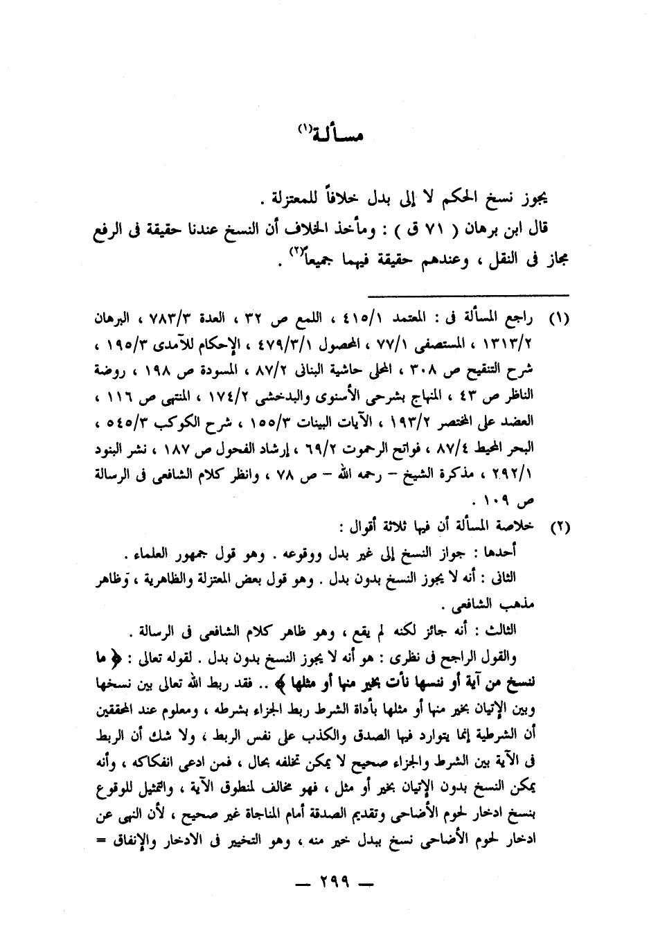 (١) راجع المسألة فى: المعتمد ١/ ٤١٥، اللمع ص ٣٢، العدة ٣/ ٧٨٣، البرهان ٢/ ١٣١٣، المستصفى ١/ ٧٧، المحصول ١/ ٣/ ٤٧٩، الإحكام للآمدى ٣/ ١٩٥، شرح التنقيح ص ٣٠٨، المحلى حاشية البنانى ٢/ ٨٧، المسودة ص ١٩٨، روضة الناظر ص ٤٣، المنهاج بشرحى الأسنوى والبدخشى ٢/ ١٧٤، المنتهى ص ١١٦، العضد على المختصر ٢/ ١٩٣، الآيات البينات ٣/ ١٥٥، شرح الكوكب ٣/ ٥٤٥، البحر المحيط ٤/ ٨٧، فواتح الرحموت ٢/ ٦٩، إرشاد الفحول ص ١٨٧، نشر البنود ١/ ٢٩٢، مذكرة الشيخ -رحمه اللَّه- ص ٧٨، وانظر كلام الشافعى فى الرسالة ص ١٠٩.