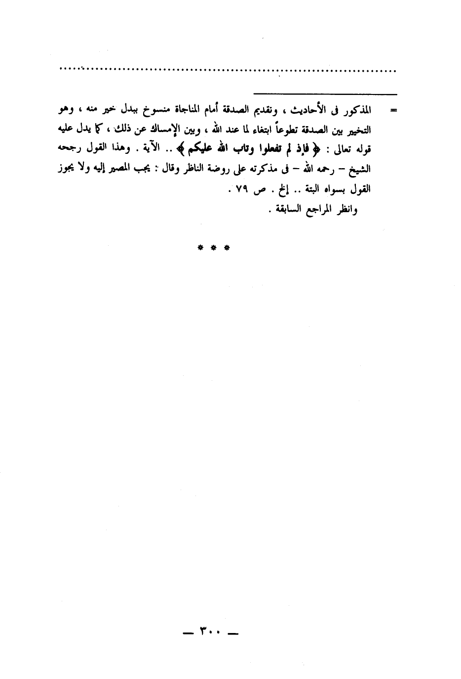 = المذكور فى الأحاديث، وتقديم الصدقة أمام المناجاة منسوخ ببدل خير منه، وهو التخيير بين الصدقة تطوعًا ابتغاء لما عند اللَّه، وبين الإمساك عن ذلك، كما يدل عليه قوله تعالى: {فَإِذْ لَمْ تَفْعَلُوا وَتَابَ اللَّهُ عَلَيْكُمْ}. . الآية. وهذا القول رجحه الشيخ -رحمه اللَّه- فى مذكرته على روضة الناظر وقال: يجب المصير إليه ولا يجوز القول بسواه البتة. . إلخ. ص ٧٩.