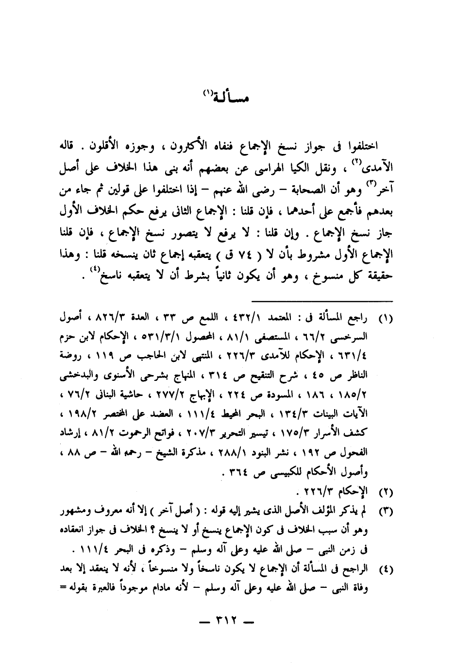 (٤) الراجع فى المسألة أن الإجماع لا كون ناسخًا ولا منسوخًا، لأنه لا ينعقد إلا بعد وفاة النبى -صلى اللَّه عليه وعلى آله وسلم- لأنه ما دام موجودًا فالعبرة بقوله =