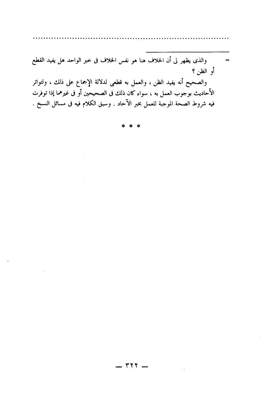 = والذى يظهر لى أن الخلاف هنا هو نفس الخلاف فى خبر الواحد هل يفيد القطع أو الظن؟