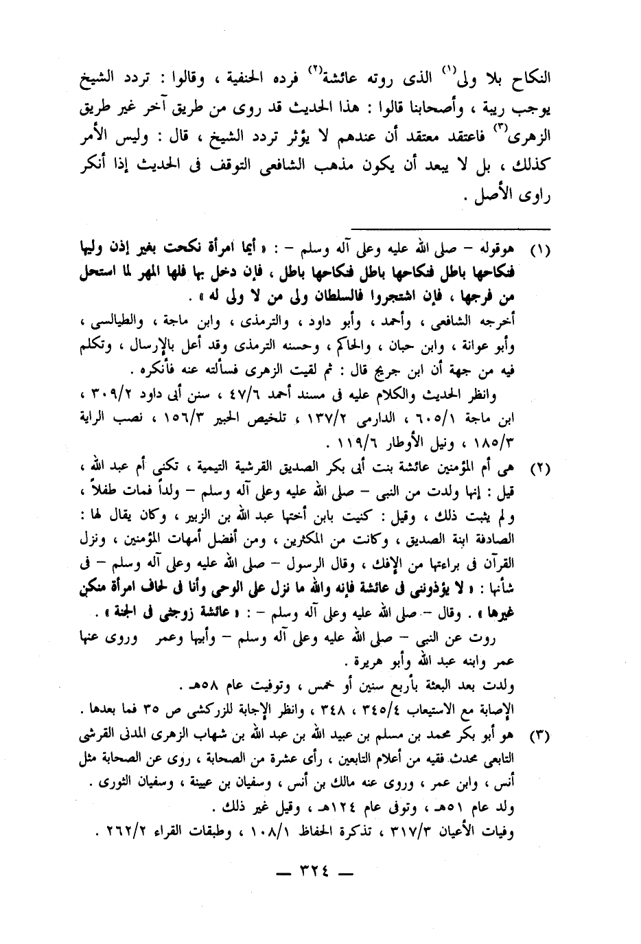 النكاح بلا ولى (١) الذى روته عائشة (٢) فرده الحنفية، وقالوا: تردد الشيخ يوجب ريبة، وأصحابنا قالوا: هذا الحديث قد روى من طريق آخر غير طريق الزهرى (٣) فاعتقد معتقد أن عندهم لا يؤثر تردد الشيخ، قال: وليس الأمر كذلك، بل لا يبعد أن يكون مذهب الشافعى التوقف فى الحديث إذا أنكر راوى الأصل.
