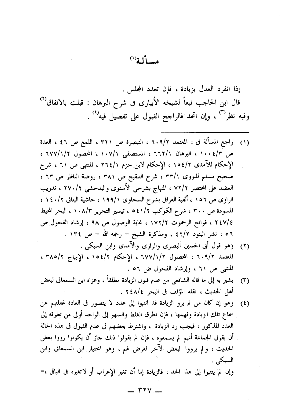 (١) راجع المسألة فى: المعتمد ٢/ ٦٠٩، التبصرة ص ٣٢١، اللمع ص ٤٦، العدة ص ٣/ ١٠٠٤، البرهان ١/ ٦٦٢، المستصفى ١/ ١٠٧، المحصول ٢/ ١/ ٦٧٧، الإحكام للآمدى ٢/ ١٥٤، الإحكام لابن حزم ١/ ٢٦٤، المنتهى ص ٦١، شرح صحيح مسلم للنووى ١/ ٣٣، شرح التنقيح ص ٣٨١، روضة الناظر ص ٦٣، العضد على المختصر ٢/ ٧٢، المنهاج بشرحى الأسنوى والبدخشى ٢/ ٢٧٠، تدريب الراوى ص ١٥٦، ألفية العراقى بشرح السخاوى ١/ ١٩٩، حاشية البنانى ٢/ ١٤٠، المسودة ص ٣٠٠، شرح الكوكب ٢/ ٥٤١، تيسير التحرير ٣/ ١٠٨، البحر المحيط ٤/ ٢٤٧، فواتح الرحموت ٢/ ١٧٢، غاية الوصول ص ٩٨، إرشاد الفحول ص ٥٦، نشر البنود ٢/ ٤٢، ومذكرة الشيخ -رحمه اللَّه- ص ١٣٤.
