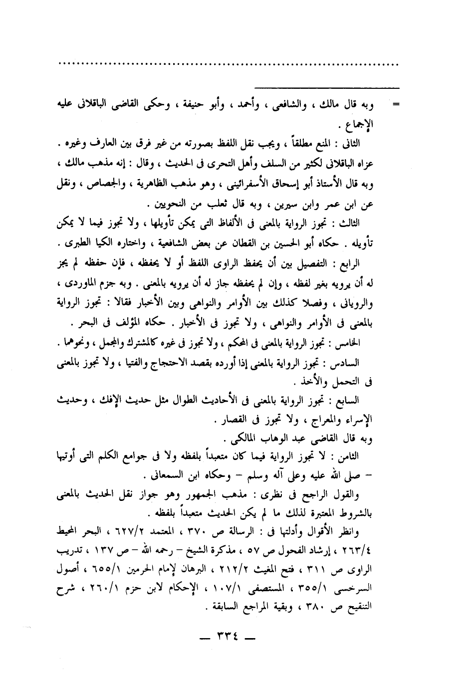 السادس: تجوز الرواية بالمعنى إذا أورده بقصد الاحتجاج والفتيا، ولا تجوز بالمعنى فى التحمل والأخذ.