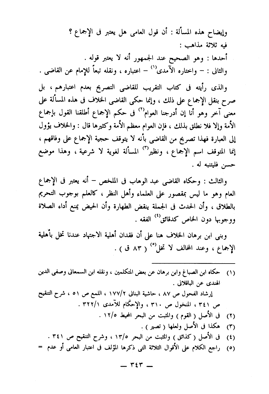 (٥) راجع الكلام على الأقوال الثلاثة التى ذكرها المؤلف فى اعتبار العامى أو عدم =