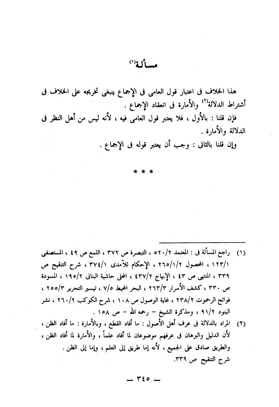 (١) راجع المسألة فى: المعتمد ٢/ ٥٢٠، التبصرة ص ٣٧٢، اللمع ص ٤٩، المستصفى ١/ ١٢٣، المحصول ٢/ ١/ ٢٦٥، الإحكام للآمدى ١/ ٣٧٤، شرح التنقيح ص ٣٣٩، المنتهى ص ٤٣، الإبهاج ٢/ ٤٣٧، المحلى حاشية البنانى ٢/ ١٩٥، المسودة ص ٣٣٠، كشف الأسرار ٣/ ٢٦٣، البحر المحيط ٥/ ٧، تيسير التحرير ٣/ ٢٥٥، فواتح الرحموت ٢/ ٢٣٨، غاية الوصول ص ١٠٨، شرح الكوكب ٢/ ٢٦٠، نشر البنود ٢/ ٩١، ومذكرة الشيخ -رحمه اللَّه- ص ١٥٨.