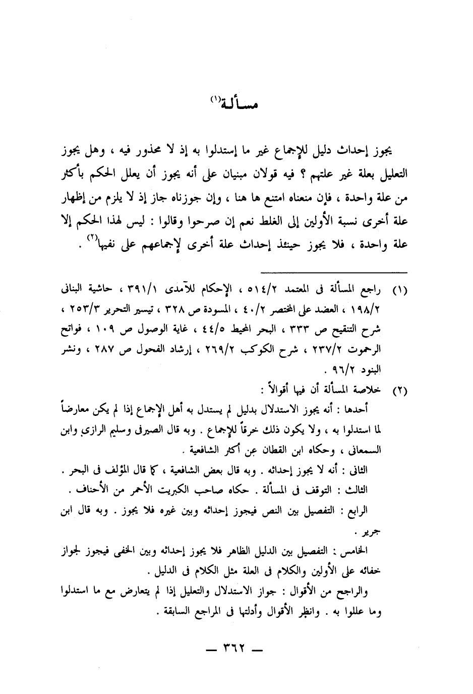 (١) راجع المسألة فى المعتمد ٢/ ٥١٤، الإحكام للآمدى ١/ ٣٩١، حاشية البنانى ٢/ ١٩٨، العضد على المختصر ٢/ ٤٠، المسودة ص ٣٢٨، تيسير التحرير ٣/ ٢٥٣، شرح التنقيح ص ٣٣٣، البحر المحيط ٥/ ٤٤، غاية الوصول ص ١٠٩، فواتح الرحموت ٢/ ٢٣٧، شرح الكوكب ٢/ ٢٦٩، إرشاد الفحول ص ٢٨٧، ونشر البنود ٢/ ٩٦.