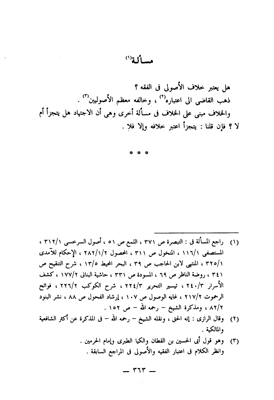 (١) راجع المسألة فى: التبصرة ص ٣٧١، اللمع ص ٥١ ـ أصول السرخسى ١/ ٣١٢، المستصفى ١/ ١١٦، المنخول ص ٣١١، المحصول ٢/ ١/ ٢٨٢، الإحكام للآمدى ١/ ٣٢٥، المنتهى لابن الحاجب ص ٣٩، البحر المحيط ٥/ ١٣، شرح التنقيح ص ٣٤١، روضة الناظر ص ٦٩، المسودة ص ٣٣١، حاشية البنانى ٢/ ١٧٧، كشف الأسرار ٣/ ٢٤٠، تيسير التحرير ٣/ ٢٢٤، شرح الكوكب ٢/ ٢٢٦، فواتح الرحموت ٢/ ٢١٧، غاية الوصول ص ١٠٧، إرشاد الفحول ص ٨٨، نشر البنود ٢/ ٨٢، ومذكرة الشيخ -رحمه اللَّه- ص ١٥٢.