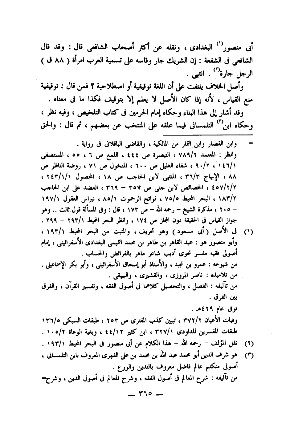 (٢) نقل المؤلف -رحمه اللَّه- هذا الكلام عن أبى منصور فى البحر المحيط ١/ ١٩٣.