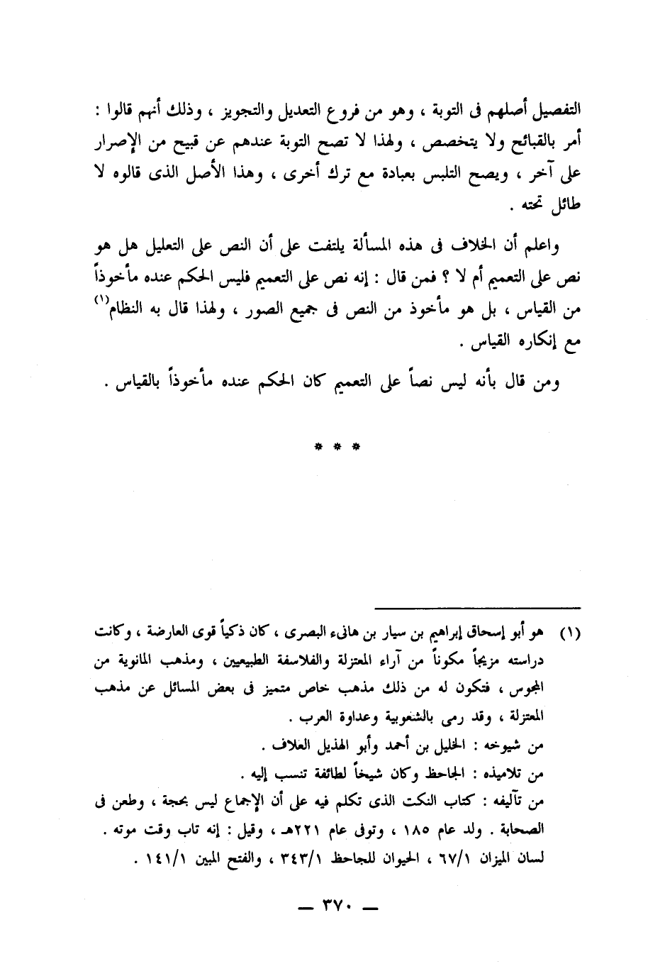 (١) هو أبو إسحاق إبراهيم بن سيار بن هانىء البصرى، كان ذكيًا قوى العارضة، وكانت دراسته مزيجًا مكونًا من آراء المعتزلة والفلاسفة الطبيعيين، ومذهب المانوية من المجوس، فتكون له من ذلك مذهب خاص متميز فى بعض المسائل عن مذهب المعتزلة، وقد رمى بالشعوبية وعداوة العرب.