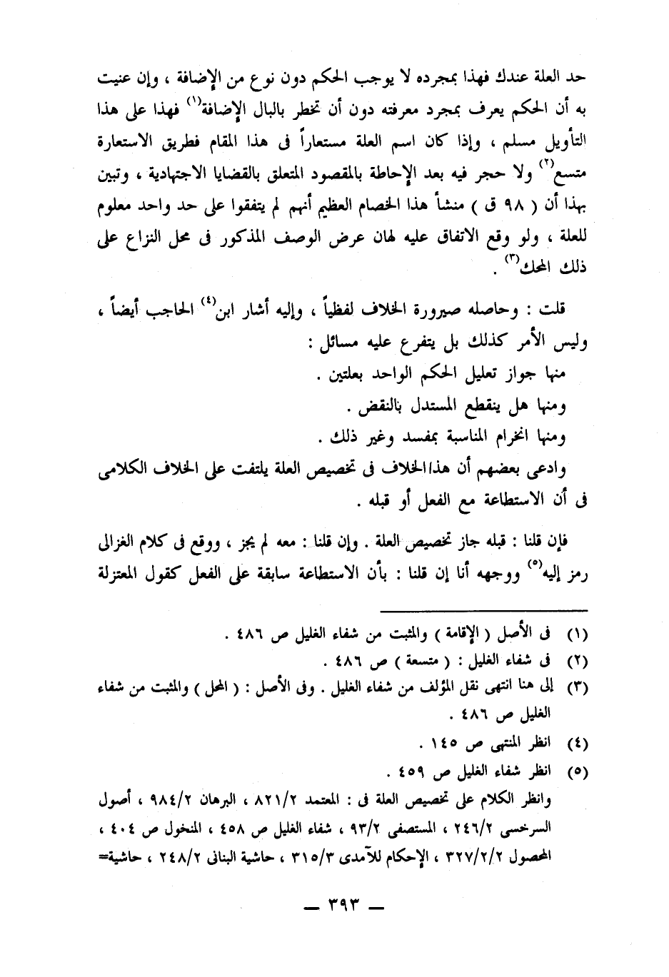 وادعى بعضهم أن هذا الخلاف فى تخصيص العلة يلتفت على الخلاف الكلامى فى أن الاستطاعة مع الفعل أو قبله.
