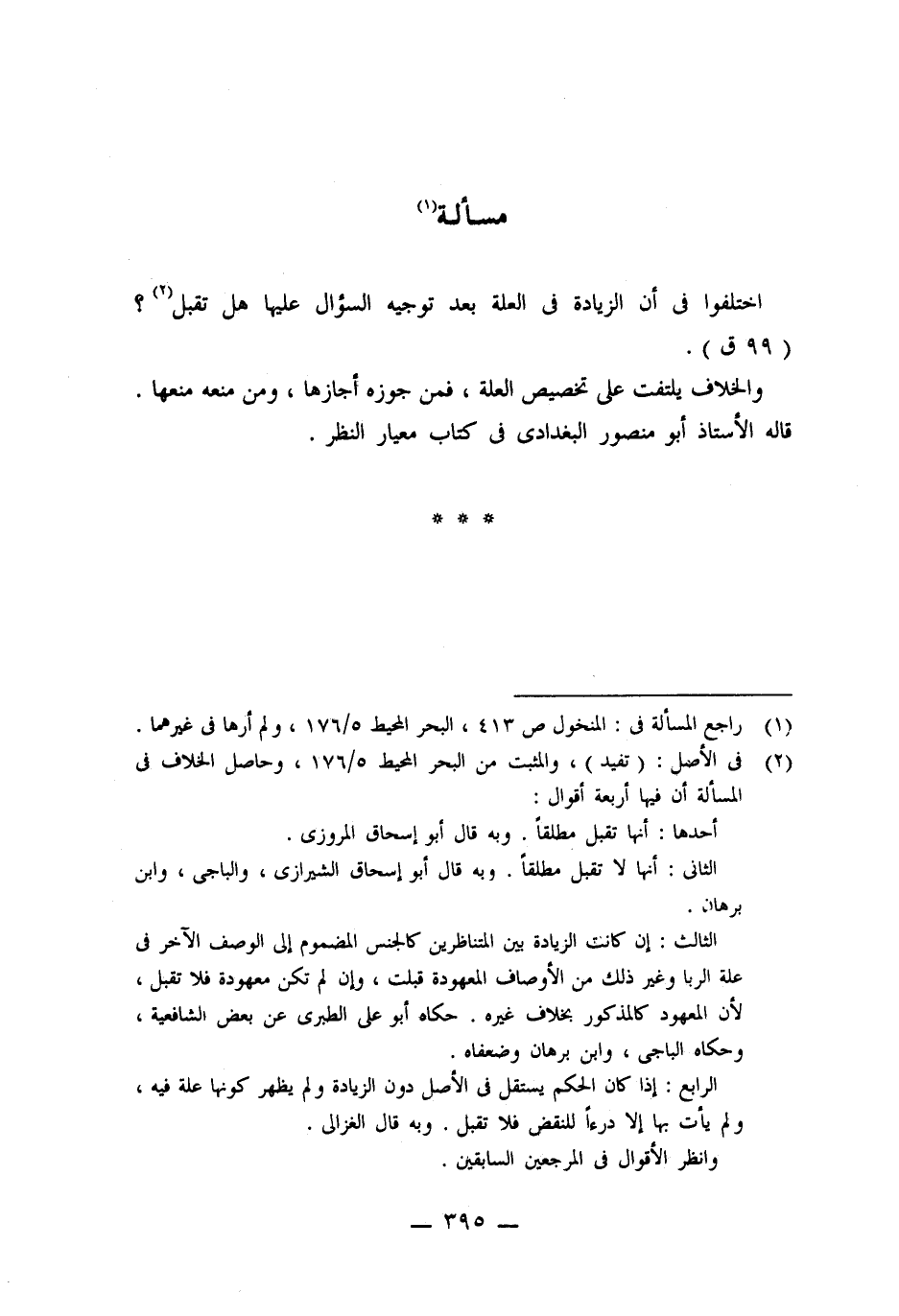 (١) راجع المسألة فى: المنخول ص ٤١٣، البحر المحيط ٥/ ١٧٦، ولم أرها فى غيرهما.