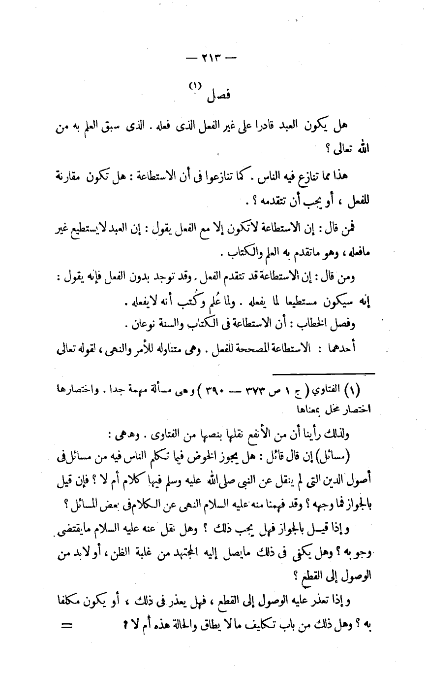 هَذَا مِمَّا تنَازع فِيهِ النَّاس كَمَا تنازعوا فِي أَن الِاسْتِطَاعَة هَل تكون مُقَارنَة للْفِعْل أَو يجب أَن تتقدمه