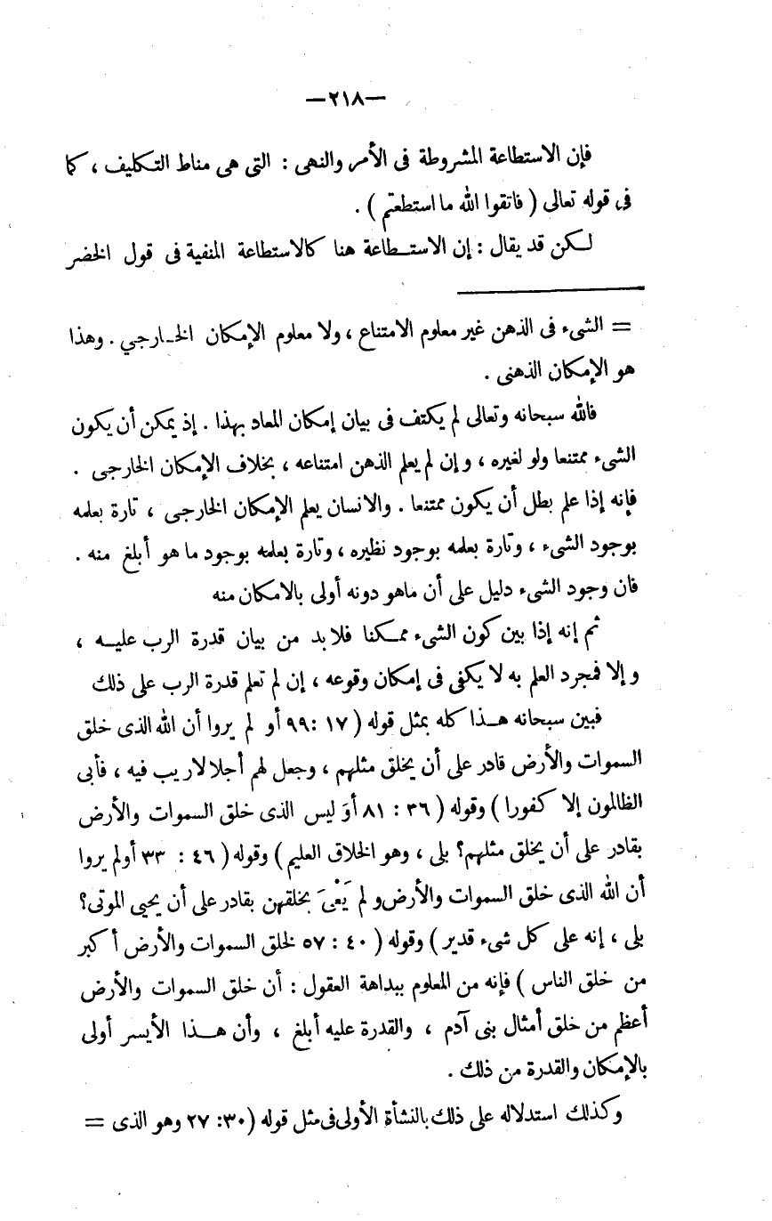 فَإِن الِاسْتِطَاعَة الْمَشْرُوطَة فِي الْأَمر وَالنَّهْي الَّتِي هِيَ منَاط التَّكْلِيف كَمَا فِي قَوْله تَعَالَى {فَاتَّقُوا الله مَا اسْتَطَعْتُم}