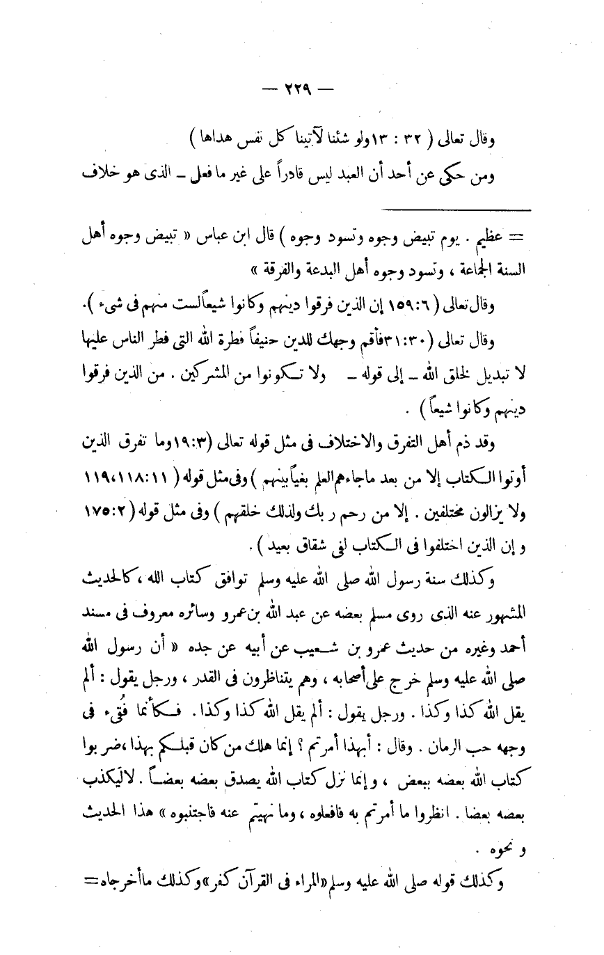 وَقَالَ تَعَالَى {وَلَو شِئْنَا لآتينا كل نفس هداها} وَمن حكى عَن أحد أَن العَبْد لَيْسَ قَادِرًا على غير مَا فعل الَّذِي هُوَ خلاف