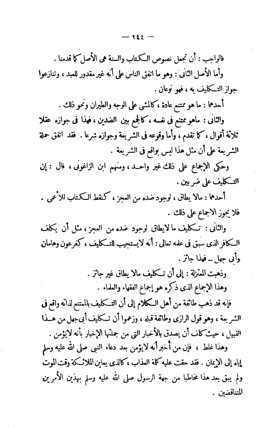 وَحكى الْإِجْمَاع على ذَلِك غير وَاحِد وَمِنْهُم ابْن الزاغرانى قَالَ إِن التَّكْلِيف على ضَرْبَيْنِ