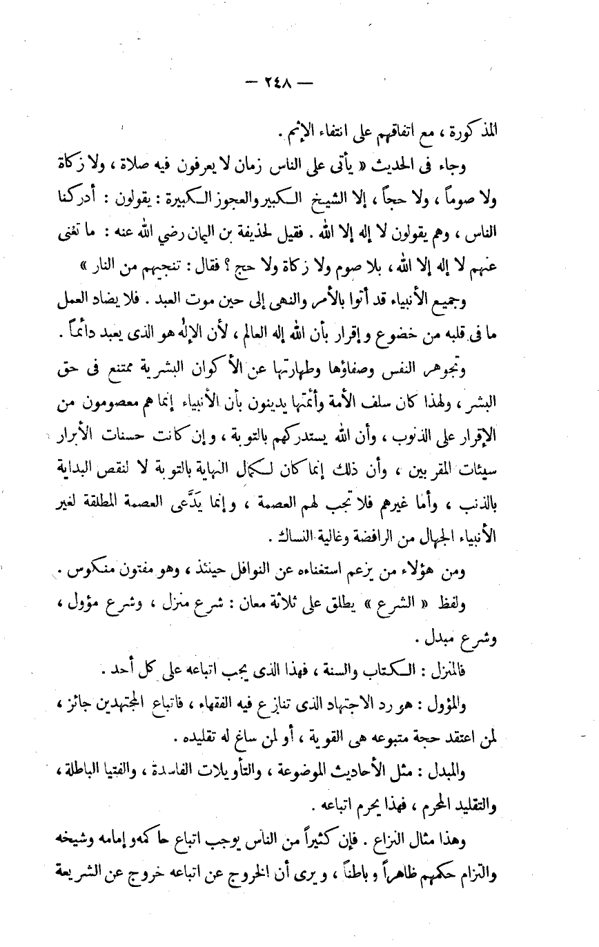 فالمنزل الْكتاب وَالسّنة فَهَذَا الَّذِي يجب اتِّبَاعه عَليّ كل أحد