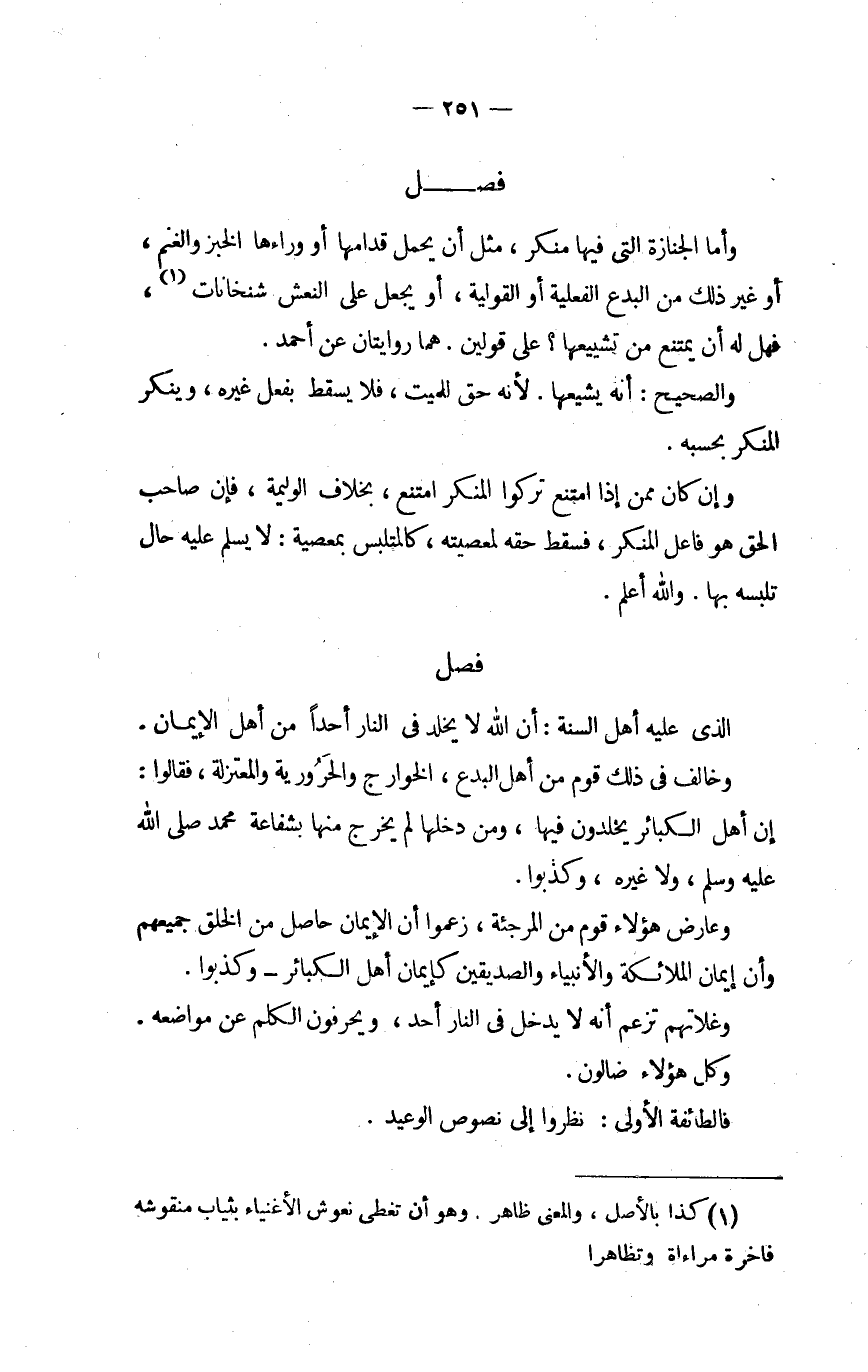 الَّذِي عَلَيْهِ أهل السّنة أَن الله لَا يخلد فِي النَّار أحدا من أهل الْإِيمَان وَخَالف فِي ذَلِك قوم من أهل الْبدع والخوارج والحرورية والمعتزلة فَقَالُوا إِن أهل الكباذر يخلدُونَ فِيهَا وَمن دَخلهَا لم يخرج مِنْهَا بشفاعة مُحَمَّد صلى الله عَلَيْهِ وَسلم وَلَا غَيره وكذبوا