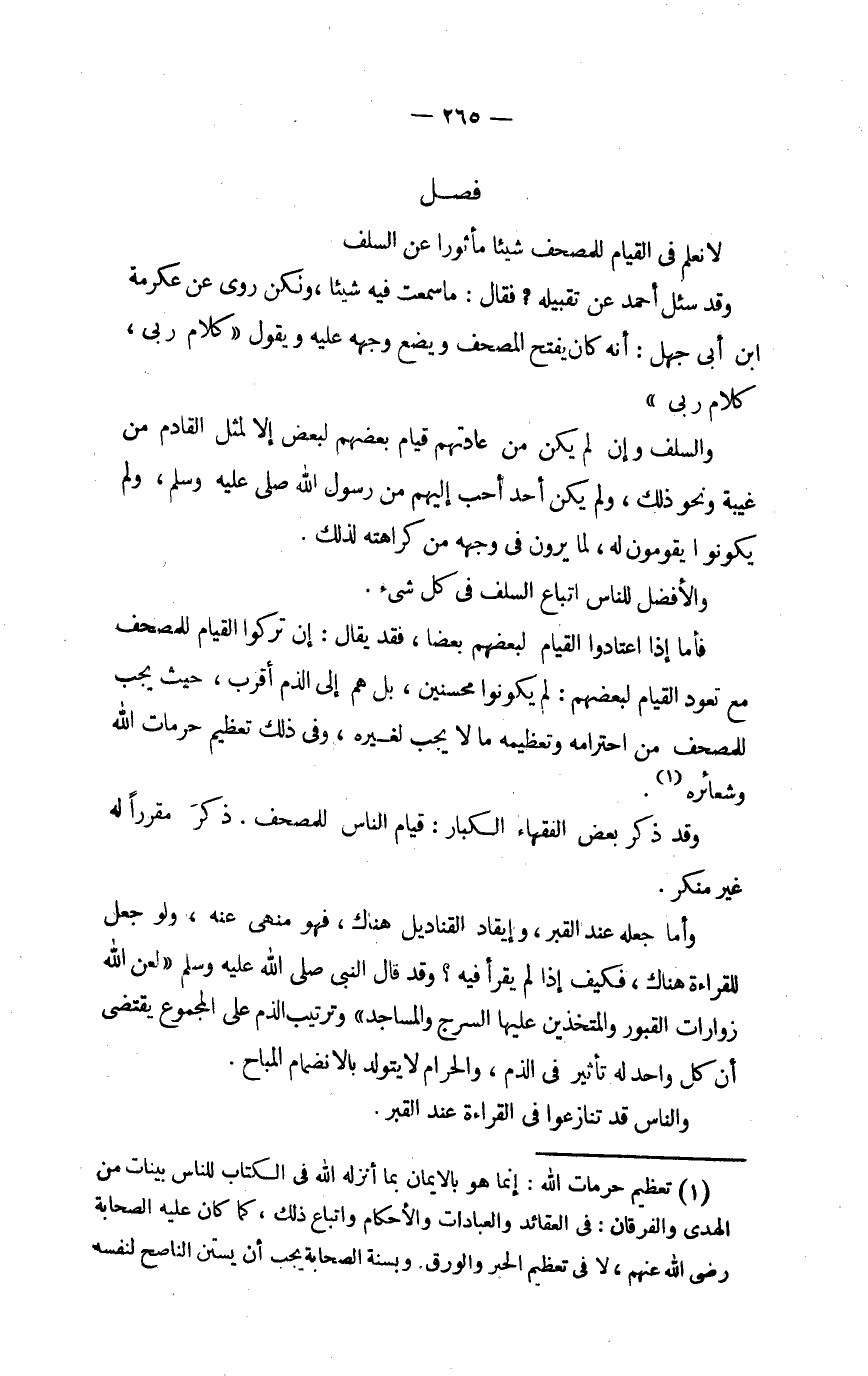 لَا نعلم فِي الْقيام للمصحف شَيْئا مأثورا عَن السّلف