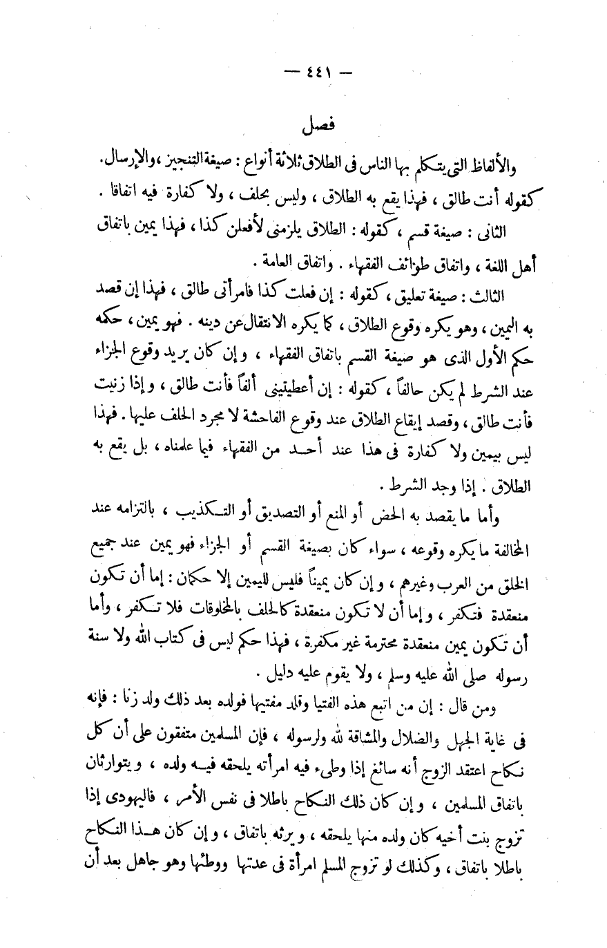 والألفاظ الَّتِي يتَكَلَّم بهَا النَّاس فِي الطَّلَاق ثَلَاثَة أَنْوَاع صِيغَة التَّنْجِيز والإرسال كَقَوْلِه أَنْت طَالِق فَهَذَا يَقع بِهِ الطَّلَاق وَلَيْسَ بِحلف وَلَا كَفَّارَة فِيهِ اتِّفَاقًا