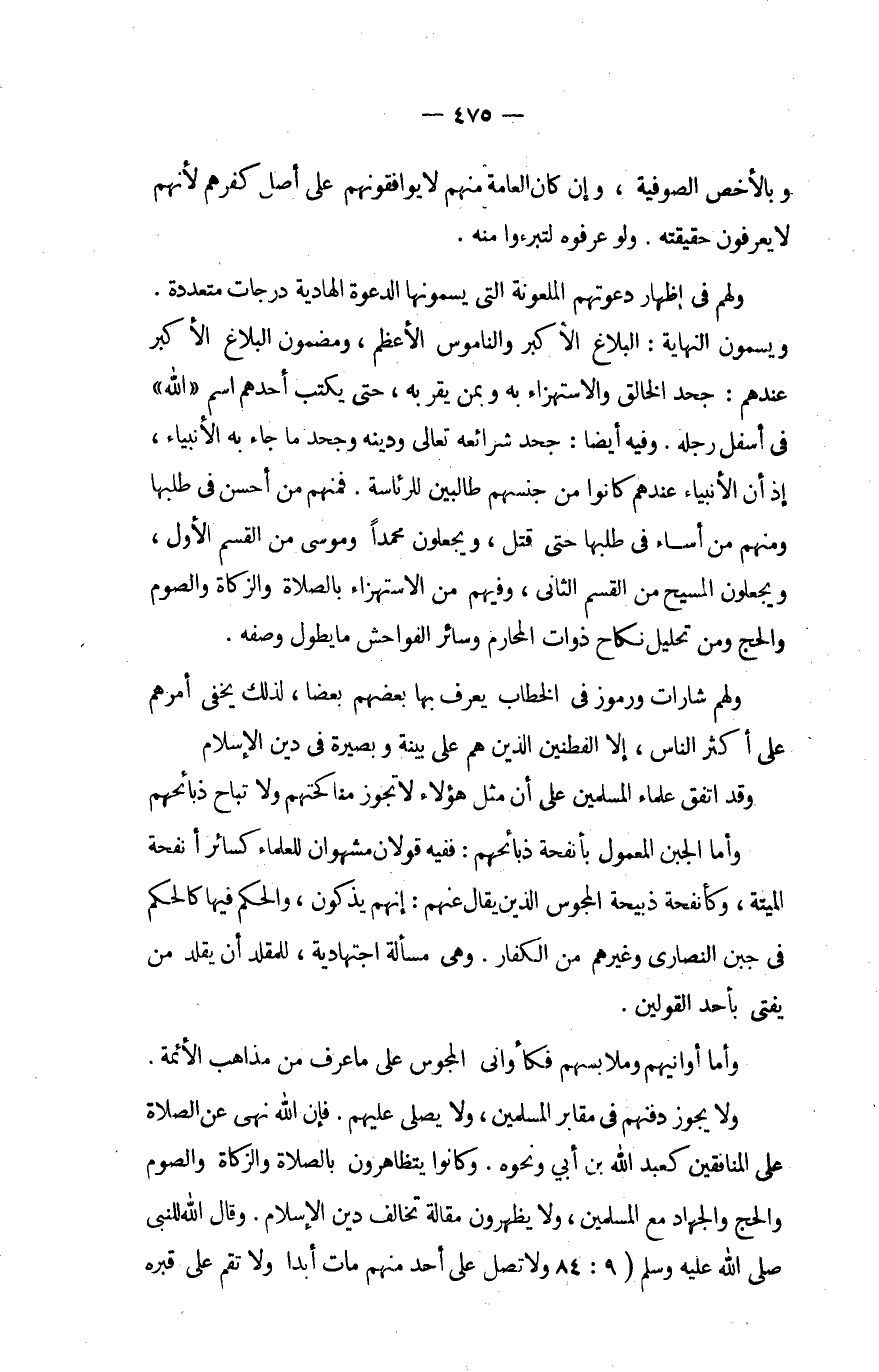 وبالأخص الصُّوفِيَّة وَإِن كَانَ الْعَامَّة مِنْهُم لَا يوافقونهم على أصل كفرهم لأَنهم لَا يعْرفُونَ حَقِيقَته وَلَو عرفوه لتبرءوا مِنْهُ