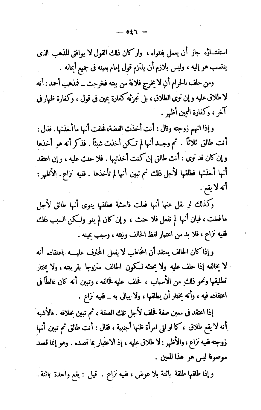 إِذا اعْتقد فِي معِين صفة فَحلف لأجل تِلْكَ الصّفة ثمَّ تبين بِخِلَافِهِ فالأشبه أَنه لَا يَقع طَلَاق كَمَا لَو لَقِي امْرَأَة ظَنّهَا أَجْنَبِيَّة فَقَالَ أَنْت طَالِق ثمَّ تبين أَنَّهَا زَوجته فَفِيهِ نزاع وَالْأَظْهَر لَا طَلَاق عَلَيْهِ إِذْ الِاعْتِبَار بِمَا قَصده وَهُوَ إِنَّمَا قصد مَوْصُوفا لَيْسَ هُوَ هَذَا الْمعِين