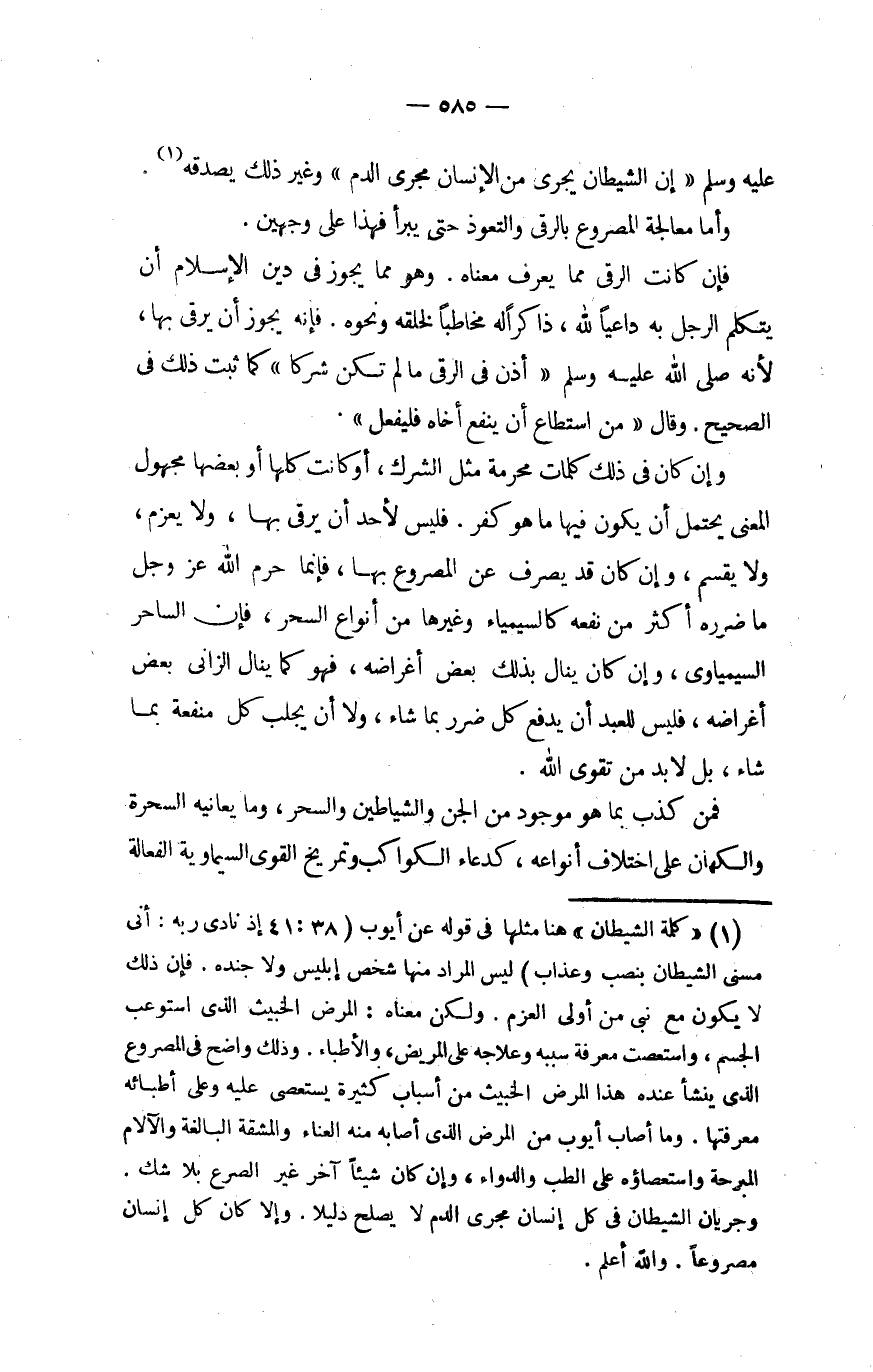 فَإِن كَانَت الرقى مِمَّا يعرف مَعْنَاهُ وَهُوَ مَا يجوز فِي دين الْإِسْلَام أَن يتَكَلَّم الرجل بِهِ دَاعيا لله ذَاكِرًا لَهُ مُخَاطبا لخلقه وَنَحْوه فَإِنَّهُ يجوز أَن يرقى بهَا لِأَنَّهُ صلى الله عَلَيْهِ وَسلم أذن فِي الرقى مالم تكن شُرَكَاء كَمَا ثَبت ذَلِك فِي الصَّحِيح وَقَالَ من اسْتَطَاعَ أَن ينفع أَخَاهُ فَلْيفْعَل